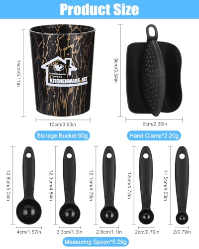Recibirá: espátula*1, escurridor*1, cepillo de aceite*1, rascador de espaguetis*1, cucharón de sopa*1, mizuna*1, espátula*1, seto de pesca*1, soporte para alimentos*1, batidor*1, pinpin*1, The za de mano*2, cucharas medidoras*5 y un cubo de almacenamiento, que son ideales para hornear, recoger, freír en sartén, mezclar, remover, extender y hornear, que pueden satisfacer sus necesidades diarias de cocina y horneado!