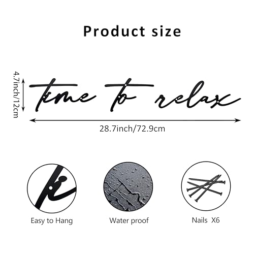 【Uniquely Crafted Design】This „Time to Relax“ wall decoration is an eye-catcher in your home decor accents. Simple but stylish, it consists of line art words that allow you to create a DIY look that suits your personal taste. This black wall art is versatile, making it the perfect addition to your relaxing decor collection.