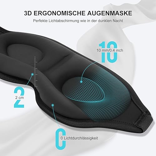 Aosun Sleeping Mask for Side Sleepers, 2024 Upgrade 3D Eye Mask Sleeping Masks for Men and Women, 100% Light Blocking Sleeping Mask with Adjustable Elastic Band for Travel (Black)