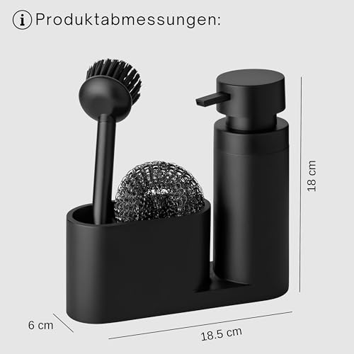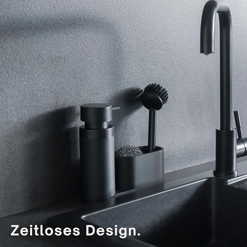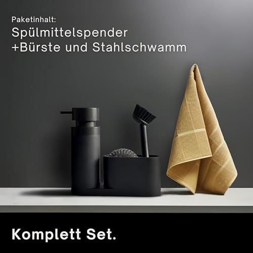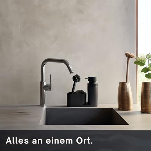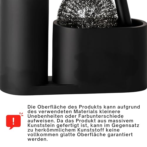 Black Sweden Home® Designer Sink Organiser Made of Artificial Stone with Brush and Steel Sponge – Kitchen Organiser Sink Set Matte Black – Detergent Dispenser Black