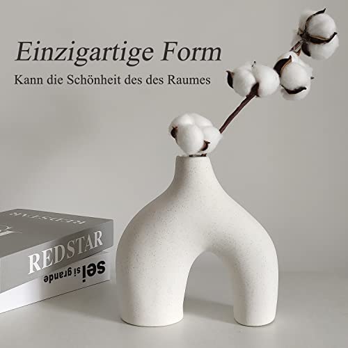 CEMABT White Ceramic Vase Set of 2 Double Mountain Vases for Modern Boho Nordic Minimalism Style Decoration Vases for Living Room, Wedding, Dinner Table, Party, Office and Bedroom
