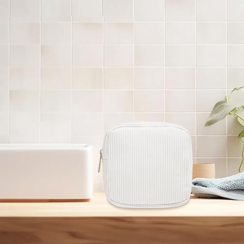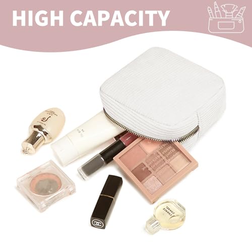 Cosmetic Bag Small, Small Cosmetic Bag for Handbag, Mini Bag, Mini Makeup Bag Women, Small Portable Travel Essentials Makeup, Cord Make Up Bag Storage Cosmetic for Toiletry Bag (White), White, No