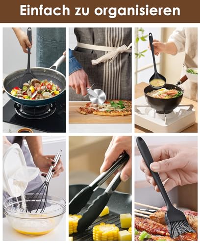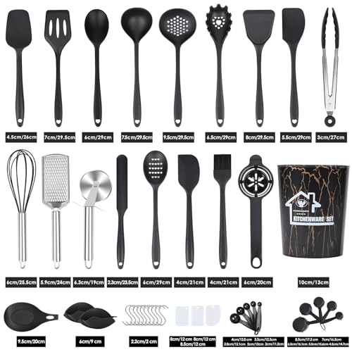 Czemo Kitchen Utensils Set, 43-Piece Silicone Kitchen Utensil Set, Cooking Utensils Set, Heat Resistant Cookware with Utensil Holder, Non-Stick Cooking Set, Kitchen Utensils, Black