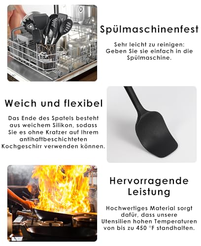 Professional design: Our cookware set is characterised by a seamless design that avoids gaps in which food and odours can settle. Whether you are stirring vibrant tomato sauces or delicate creams, our silicone heads guarantee no residue of paint or unpleasant odors. The ergonomic handle design not only provides a comfortable grip, but also prevents heat transfer, ensuring safe handling when cooking.