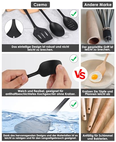Perfect cooking and baking present: Whether or not for skilled cooks or kitchen novices, our full cookware set is the right present for anybody who loves cooking and baking. Whether or not for Christmas, housewarmings, events or weddings, our silicone utensil set will delight the recipient with its high quality and practicality. Give eventful cooking moments with Czemo.