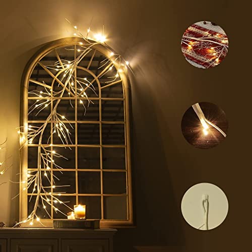 DELICHTER Pure White Rotang Light Branch with 48 Bright Warm White LEDs, Power Operated, Fairy Lights Decor for Bedroom, Indoor, Outdoor, Christmas, Illuminated Wall, Christmas Decoration, Window