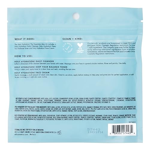 e.l.f. SKIN Holy Hydration! The Essentials Mini Kit, Cleanser, Toner & Moisturizer for Hydrated & Balanced Skin, Travel Friendly, Vegan & Cruelty Free