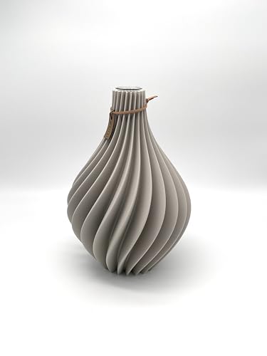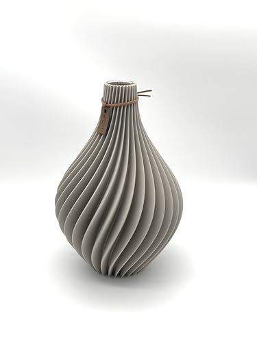 Filsi Home 3D Print Vase Nuvia Sustainable Environmentally Friendly Waterproof Deep Grooves Unique Look Made in Germany (Greige, 25 cm Height 17 cm Diameter)