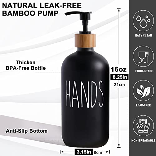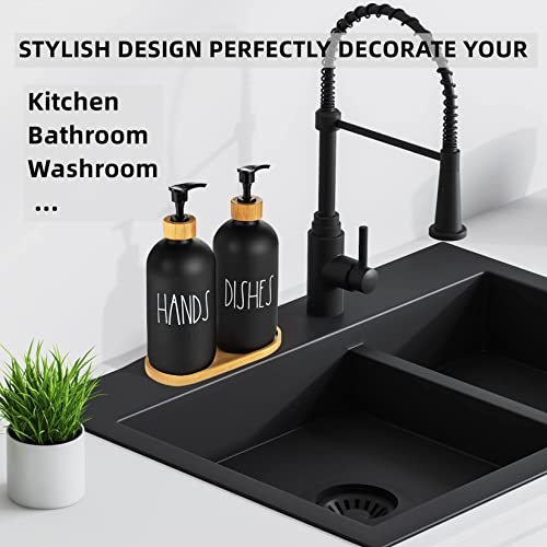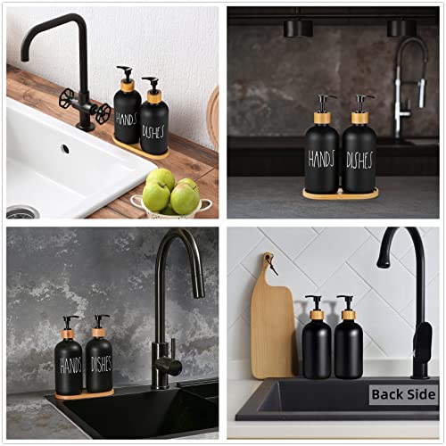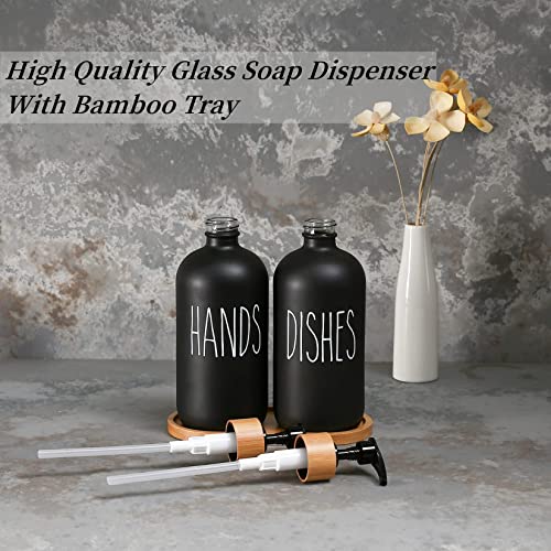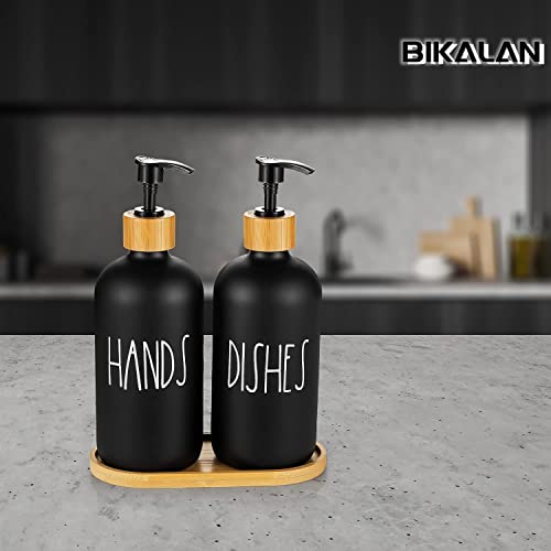 Glass Soap Dispenser Set, BIKALAN 475 ml Soap Dispenser Black Matt Bathroom Set with Tray, Shampoo Lotion Hand Soap Dispenser for Kitchen Worktop