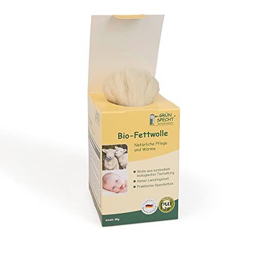 Grünspecht 638-00 Organic Wool Controlled Biological Husbandry, Rohwolle High Lanolin Content for Skin and Baby Sheep’s Wool, 50 g, Beige