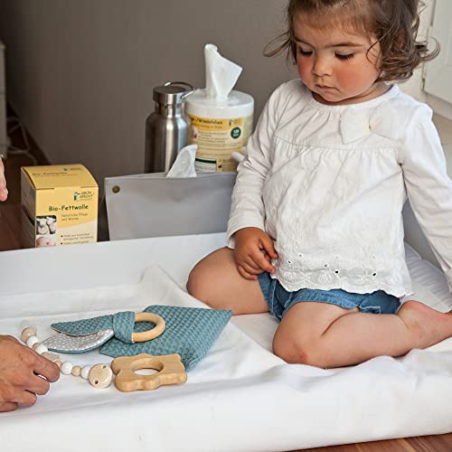 Greasy wool, popularly referred to as „uncooked wool“, is used for pure care and heat. It nourishes burdened nipples in addition to delicate child buttocks and pores and skin areas. The sensible dispenser permits economical elimination of the wool and is resealable. The wool is fastidiously chosen new wool from managed natural animal husbandry. The product should solely be used as soon as and have to be disposed of after use.