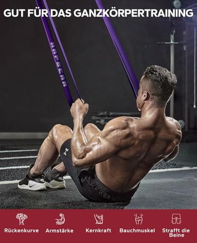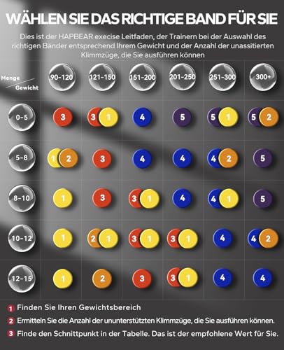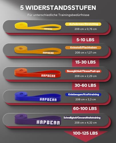 Die HAPBEAR Widerstandsbänder sind multifunktionale Fitnessbänder, die für verschiedene Übungen wie Klimmzüge, Liegestütze, Kniebeugen und mehr verwendet werden können.