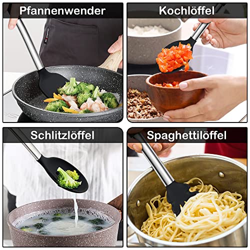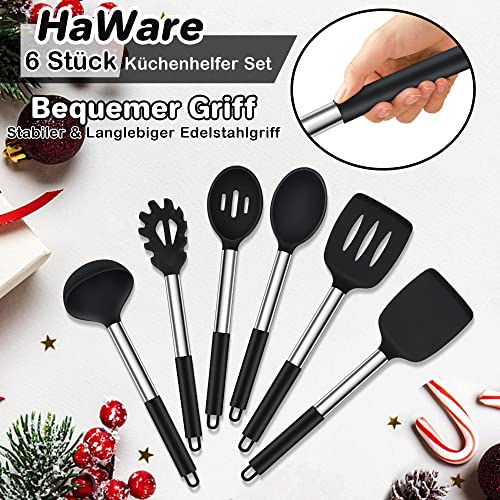 HaWare Kitchen Utensil Set, 6 Pieces Silicone Kitchen Utensils, Cooking Spoon Set with Stainless Steel Handle, Non-Stick Heat Resistant Cooking Utensils, Cooking Cutlery Set, Easy to Clean and