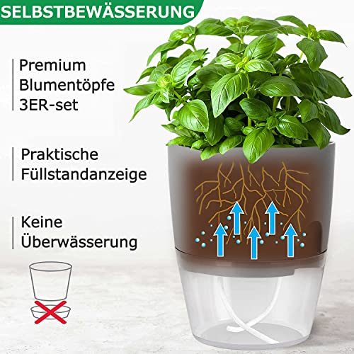 iDattel Herb Pot Kitchen Set, Window Sill, Self-Watering Set of 3, Herb Garden for the Kitchen, 18.2 x 11 x 15.3 cm, for Fresh Kitchen Herbs, Grey