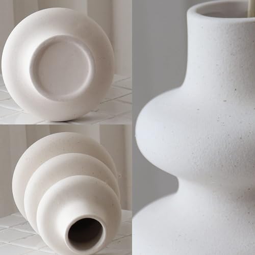 JSPYFITS Modern Ceramic Vase for Pampas Grass, INS Nordic Style Vase for Dried Flowers, Three Layer Flower Vase, Boho Home Decor for Centrepiece Wedding/Party/Gifts, M