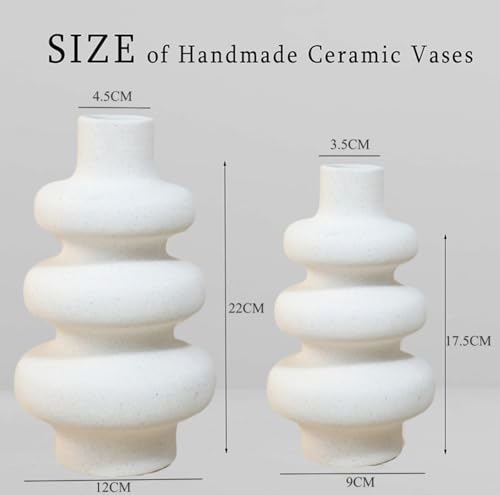 Decorative aesthetic vases: available in two sizes, large: 22 cm x 12 cm, bottle mouth: 4 cm, medium: 17.5 cm x 9 cm, bottle opening: 3.5 cm. Thanks to its timeless and simple boho design, it adds a touch of elegance to any room and looks particularly high quality and decorative, be it with a colourful bouquet or stylish dried flowers.