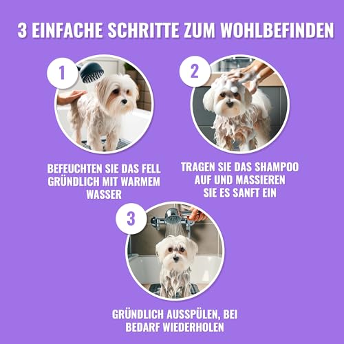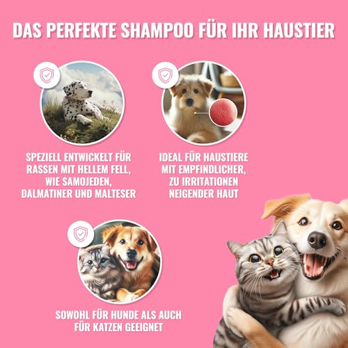 Special formula for sensitive skin: ideal dog shampoo white fur and sensitive skin, our shampoo gently nourishes, prevents irritation and maintains the natural skin texture.