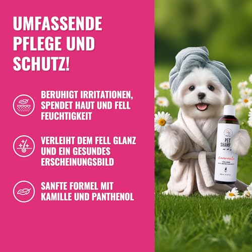 Kamomile Dog Shampoo Sensitive – Gentle Care and Shiny Coat for Dogs and Cats with Sensitive Skin – Relieves Skin Irritation – 250 ml