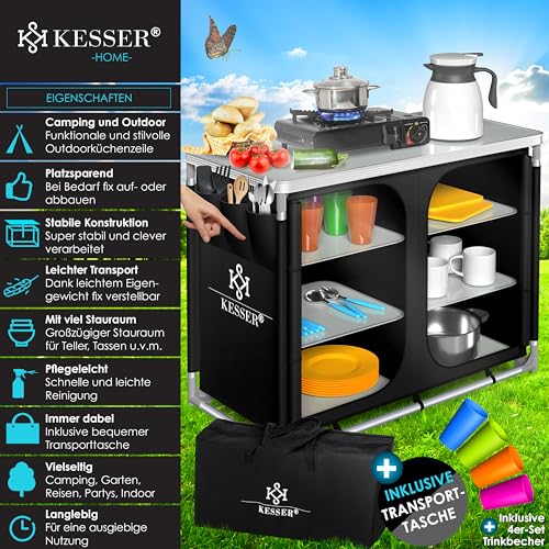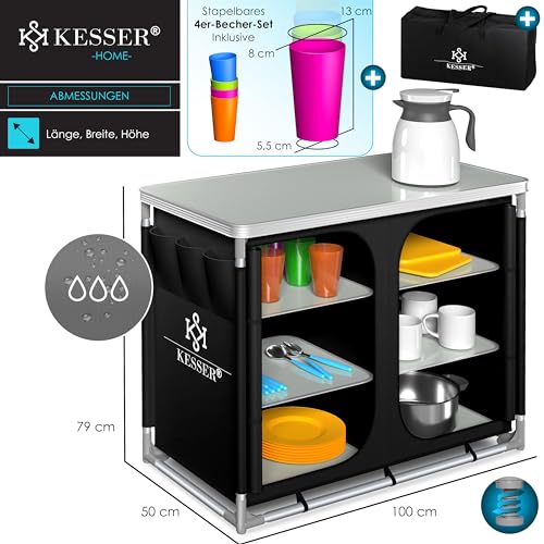 Kesser® Camping Kitchen Unit, Including Carry Bag, Camping Cupboard, with Aluminium Frame, Travel Kitchen, Kitchen Box, Tent Cupboard, Outdoor Camping Kitchen Unit, incl. Mug Set, Choice of models,