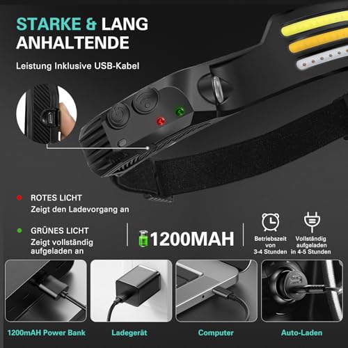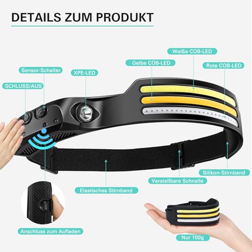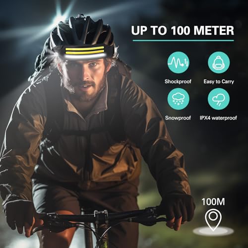 Superior COB LED know-how: Say goodbye to glare, headlamps shield your eyes on any journey. Take pleasure in a 50-100 m irradiation publicity space, guarantee obstacle-free exploration. Wave your hand inside a radius of 10 cm to rapidly flip it on and off in induction mode.