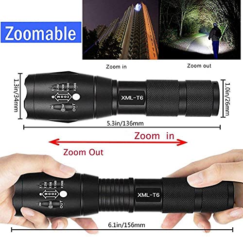 Adjustable focus and body material: thanks to the zoomable design, the illuminated area of the torch can be adjusted. With the aluminium alloy of aviation, this torch is strong and robust enough for long application time.