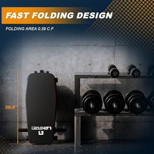 【Schnell Faltbare Hantelbank】Unsere Trainingsbank könnte in 5 Sekunden zusammengeklappt werden, leicht in Ecke oder Kleiderschrank, unter dem Bett oder einfach nur im Kofferraum zu verstauen. Platzsparend, zusammenklappbar, Größe: 72,1 x 30,5 cm (L x B). Perfekte Passform für das Heimtraining und leicht mit Hantelbank überall hin mitzunehmen.
