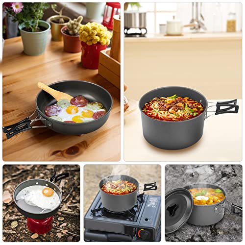 👍【Tenting Cookware Set 10 Piece Set】: This set accommodates 2 pots, 1 frying pan, 1 soup spoon, 1 picket rice spoon, 3 plastic bowls, 1 cleansing fabric and 1 mesh bag. All this may be stacked in a mesh bag. You may simply take it with you. Very appropriate for 2-3 folks for out of doors cooking.