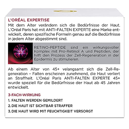 L’Oréal Paris Face Moisturiser, Anti-Ageing Cream to Reduce Wrinkles with Retino Peptides, For Firmer and Softer Skin, Anti-Wrinkle Expert, 1 x 50 ml