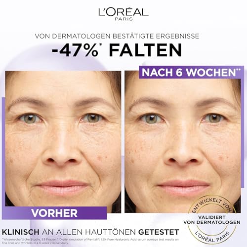 The Loreal Revitalift Filler [+ Hyaluronic Acid] serum instantly gives the pores and skin with intensive moisture and plumps it. Whereas long-chain hyaluronic acid kinds a hydrating movie on the pores and skin floor and considerably reduces the lack of pores and skin’s personal moisture, short-chain hyaluronic acid penetrates deeper into the pores and skin and fills the moisture deposits of the pores and skin. With 0.5% macro hyaluronic acid and 1% micro hyaluronic acid, the Revitalift filler (+ hyaluronic acid) anti-ageing serum incorporates a complete of 1.5% hyaluronic acid and is efficient in opposition to first strains and wrinkles. Designed for efficient wrinkle discount, the hyaluronic acid + vitamin C serum for the face delivers plump, smoother and younger trying pores and skin. The hyaluronic filler anti-ageing moisturiser is appropriate for all pores and skin sorts: Product compatibility is examined on all pores and skin sorts (dry, delicate and mixture pores and skin). Notably appropriate for pores and skin from approx. 30 years. For over 30 years, L’Oréal Paris has been concerned with different testing strategies for beauty merchandise for a world with out animal testing.