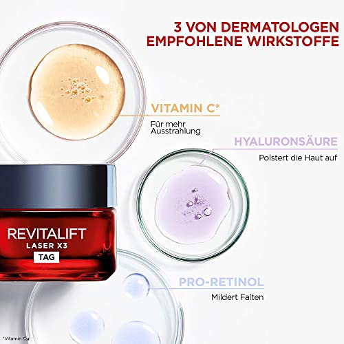 L’Oréal Paris Revitalift Laser X3 Face Care Set, Anti-Ageing Day Cream and Night Cream with Triple Effect, with Pro-Retinol, Hyaluronic and Vitamin C, 2 x 50 ml