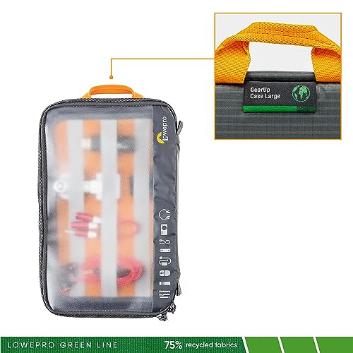 Lowepro GearUp Pouch Large, Travel Essentials Case, Travel Bag for PC Cables, Adapters, Batteries, Chargers, Small Cameras & USB Sticks, Laptop Accessory Bag, Made of Recycled Material, Grey