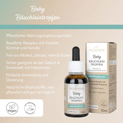 MABYEN Baby Belly Drops 30 ml | Herbal Dietary Supplement – with Fennel, Chamomile & Cumin – Alcohol, Lactose & Gluten Free – Suitable from Birth