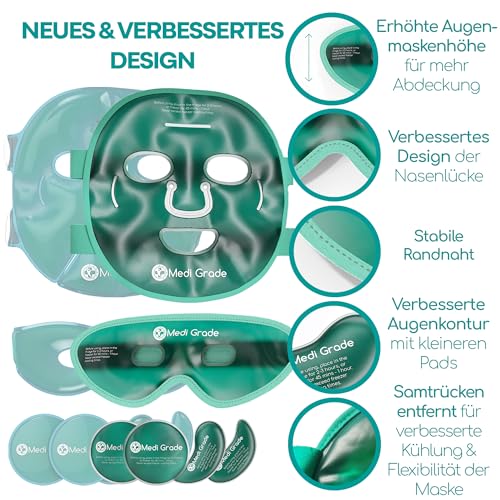 Medi Grade Cooling Mask Face and Cooling Eye Pads – Eye Mask Cooling with Gel Technology, Face, Eyes, Dark Circles Remove, Reduces Swelling, Dark Circles, with Cool Bag