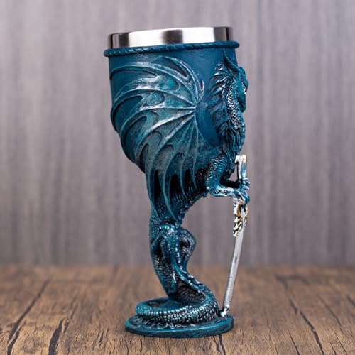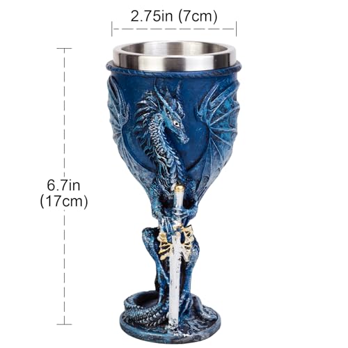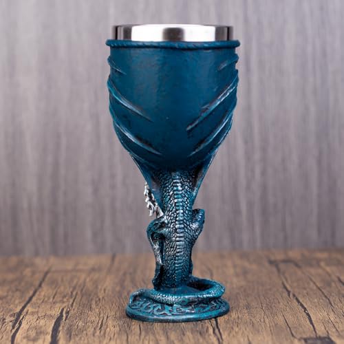 Medieval Goblet Resin Cup with Stainless Steel Lining Unique Home Decor and Functional Wine Goblet Hand Painted Dragon Design Perfect for Father’s Day Themed Parties (030-5)
