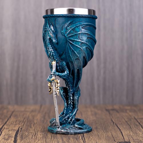 This Divine Blade Dragon Wine Goblet is product of advantageous polyresin and chrome steel, hand painted and polished individually.