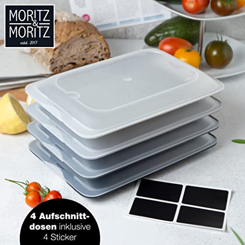 Moritz & Moritz Set of 4 Stackable Food Storage Containers with Lids for Storing Sausage, Cheese, Much More – Includes Blackboard Stickers for Labelling