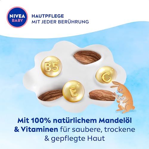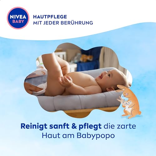 NIVEA BABY Soft & Cream Feuchttücher, Baby Feuchttücher zur sanften Reinigung empfindlicher Babyhaut, hypoallergene Feuchttücher für Babys mit Mandelöl und Vitaminen (4 x 57 Stück)