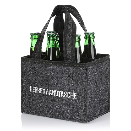 Nordstern Men's Handbag Felt Bottle Bag – Trendy Beer Carrier for 6 Bottles – Grey with Dividers – Foldable – 20 x 13 x 15 cm, gray Menge