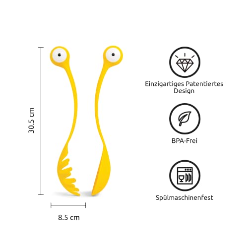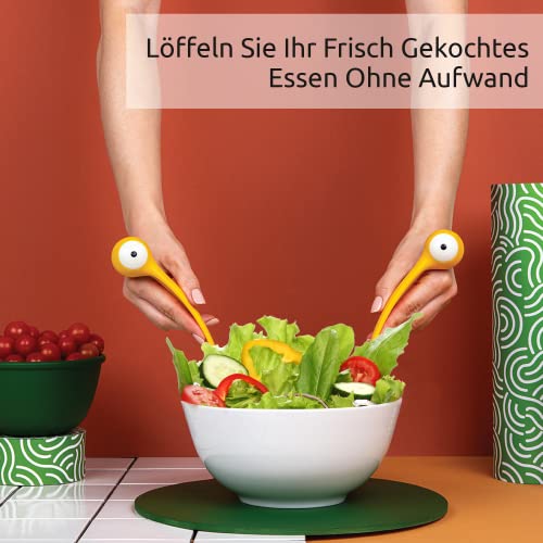 SERVING MONSTER – Is there spaghetti today? Or delicious leafy vegetables? The Pasta Monster Duo consisting of salad spoon and fork from design award winner OTOTO Studio is always at your service. This salad cutlery is extra durable and dishwasher safe. The spaghetti fork set not only looks cute, but is an absolute must-have kitchen accessory for every meal. With the googly eyed salad serving cutlery made from 100% food-safe and BPA-free material, nothing can go wrong