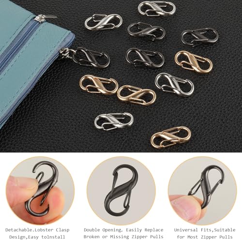 3 colours and portable size: the package contains 12 zip clips in 3 different colours, gold, silver and gunmetal, the style is versatile, you can choose different colours to match your clothes or backpack. L 2.7 x 1.1 x 0.3 cm, convenient and safe to use, easy to attach to any desired item