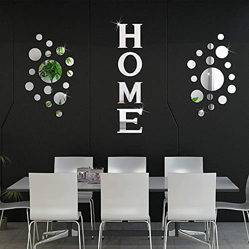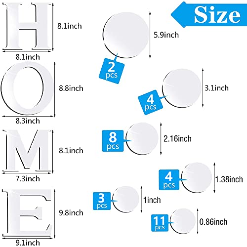 Size type: 1 set of wall stickers contains „“Home“ quotes mirror wall decoration and 32 round circle shape wall stickers. Home mirror wall sticker, home mirror wall sticker: approx. 23 x 22 cm. Round circle shape, has different sizes of 15 cm, 8 cm, 5.5 cm, 3.5 cm, 2.5 cm, 2.2 cm.