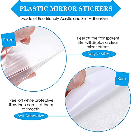 Installation: the home mirror stickers on the wall mirror are easy to stick and remove, the back is provided with adhesive, they are very easy to stick, simply peel off white protective films and apply to smooth surfaces such as tiles.