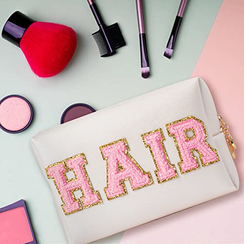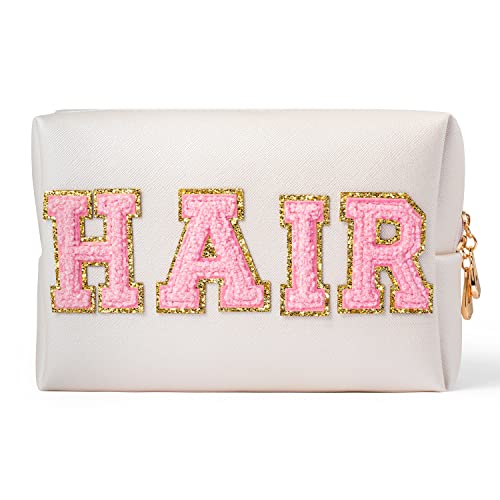 Creative design: the HAIR patch cosmetic bag adopts a simple design. Letters with gold embellishment, which makes the cosmetic bag look very bright and generous. It is a fashionable choice for you to travel on business.