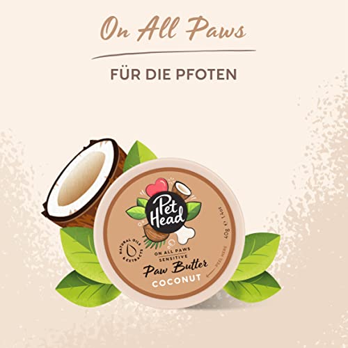 PET HEAD Coconut Paw Butter 40 g, On All Paws, Moisturising Balm for Dog Paws, Soothes and Nourishes Paws and Noses, Professional Care, Vegan, Gentle Formula for Dogs and Puppies