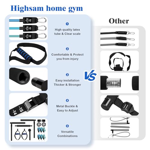 Multifunctional Pilates bar set: highsam Pilates bar is designed as a multifunctional fitness device that can shape the body, train muscles, reduce weight and provide exercises that can be done without the gym. The metal rod has a nylon cord with scale and is adjustable from 4.3 to 18 inches. Based on your height and the movements you want to perform, you can adjust the buckle so that both sides are set to the same value for training.