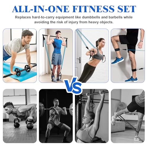 Various accessory combinations: you can use handles, stackable expander bands, door anchors and foot straps cable pull to train your shoulders, arms, chest, legs and hips. The resistance bands with handle can completely replace dumbbells or heavy items for strength training. The foam handle is non-slip and sweat-proof, the stainless steel carabiner is strong and durable, foot straps padded inside guarantee comfortable and the door anchor is thicker and safer.