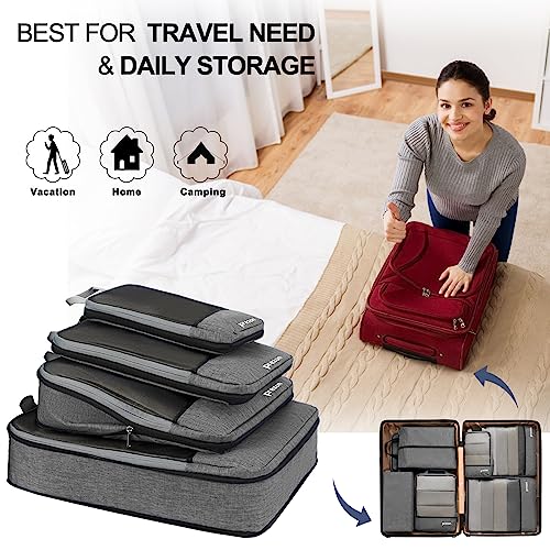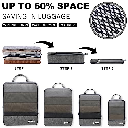 Prezon Compressible Packing Cubes for Organising Your Travel Luggage, Compression Packing Cube, Packing Bags Set & Luggage Organiser for Backpack & Suitcase