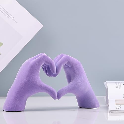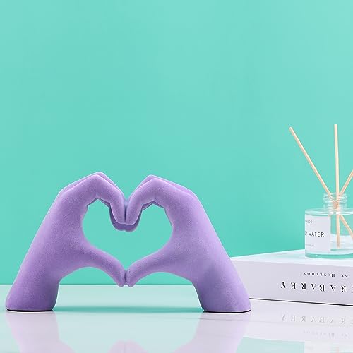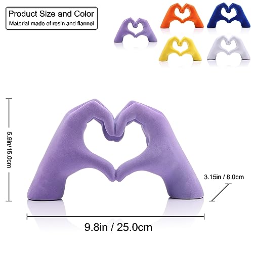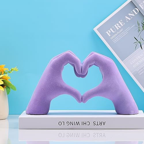Purple Heart Hand Statue Home Decoration, Love Sign Coquette Decorative Hut, Romantic Heart Hand Sculpture, for Shelves, Desks, Countertops, Dining Room Table Centrepieces