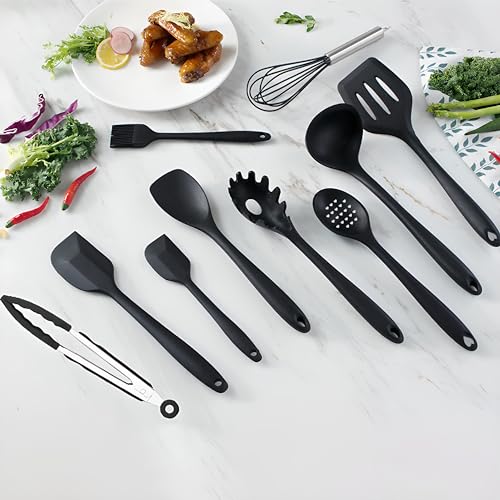 Retoo Kitchen Utensil Set Silicone Kitchen Utensils, 10-Piece Cooking Utensils Non-Stick Cooking Set Dishwasher Safe Cookware Silicone Spatula Spoon Turner Ladle