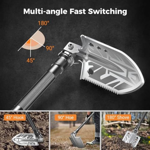 Foldable and portable – This camping shovel can be folded and extended for safe storage and carrying. A durable carry bag is included as a camping gift.